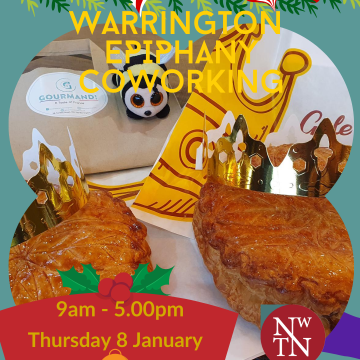 Join us in Warrington for a ‘January Special’ coworking session featuring a ‘Galette des Rois’, a cake the French eat at the Epiphany (well, all through January…) – will you win the little token in your slice? If you find it, you become the ‘King/Queen for the Day’! Our galette comes from Gourmand café nearby.